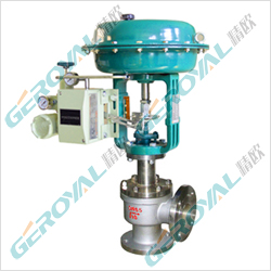 GEROYAL公司生产的气动角式调节阀是采用顶部导向结构,由多弹簧气动薄膜执行机构和角型调节阀阀体组成。气动角型调节阀具有结构紧凑、重量轻、动作灵敏、流体通道呈流线型、压降损失小、阀容量大、流量特性准确、拆装方便等优点。气动角式调节阀配用电-气阀门定位或气动阀门定位器,可实现对工艺管路流体介质的自动调节控制。气动角式高压调节阀具有体积小、重量轻、阀芯采用顶导向结构,流路简单、阻力小、易于冲洗的特点。气动角式调节阀广泛应用于准确控制气体、液体等介质,工艺参数如压力、流量、温度、液位保持在给定值。气动角式高压调节阀特别适用于允许泄露量小阀前阀后压差不大的高粘度、含有悬浮物和颗粒状物质的的调节,可避免结焦、堵塞,便于自净与清洗的场合 。