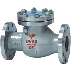 H44H、H44Y 型旋启式钢制止回阀是靠管路中介质本身的流动产生的力而自动开启和关闭的,属于一种自动阀门。止回阀用于管路系统,其主要作用是防止介质倒流、防止泵及其驱动电机机反转,以及容器内介质的泄放。止回阀还可用于给其中的压力可能升至超过主系统压力的辅助系统提供补给的管路上。
