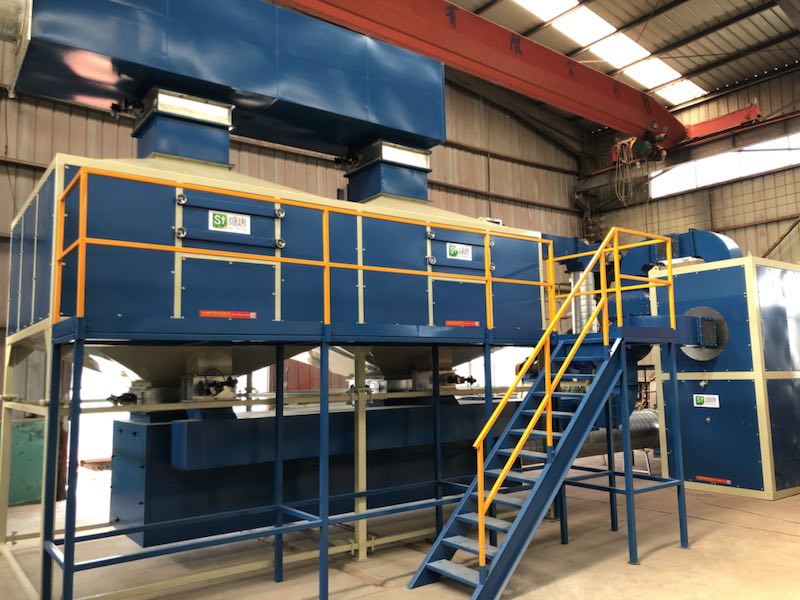 RCO具有RTO(蓄热式热力焚化炉)高效回收能量的特点和催化反应的低温工作的优点,将催化剂置于蓄热材料的顶部,来使净化达到优良,其热回收率高达95%。