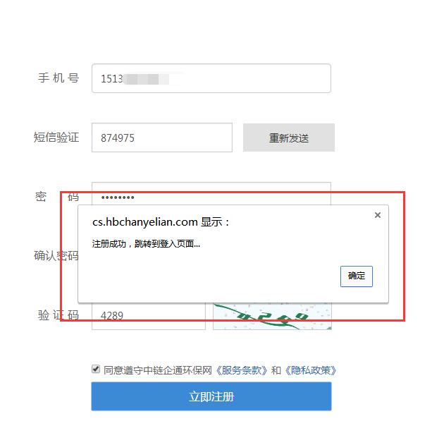 第三步:注册成功,点击“确定”