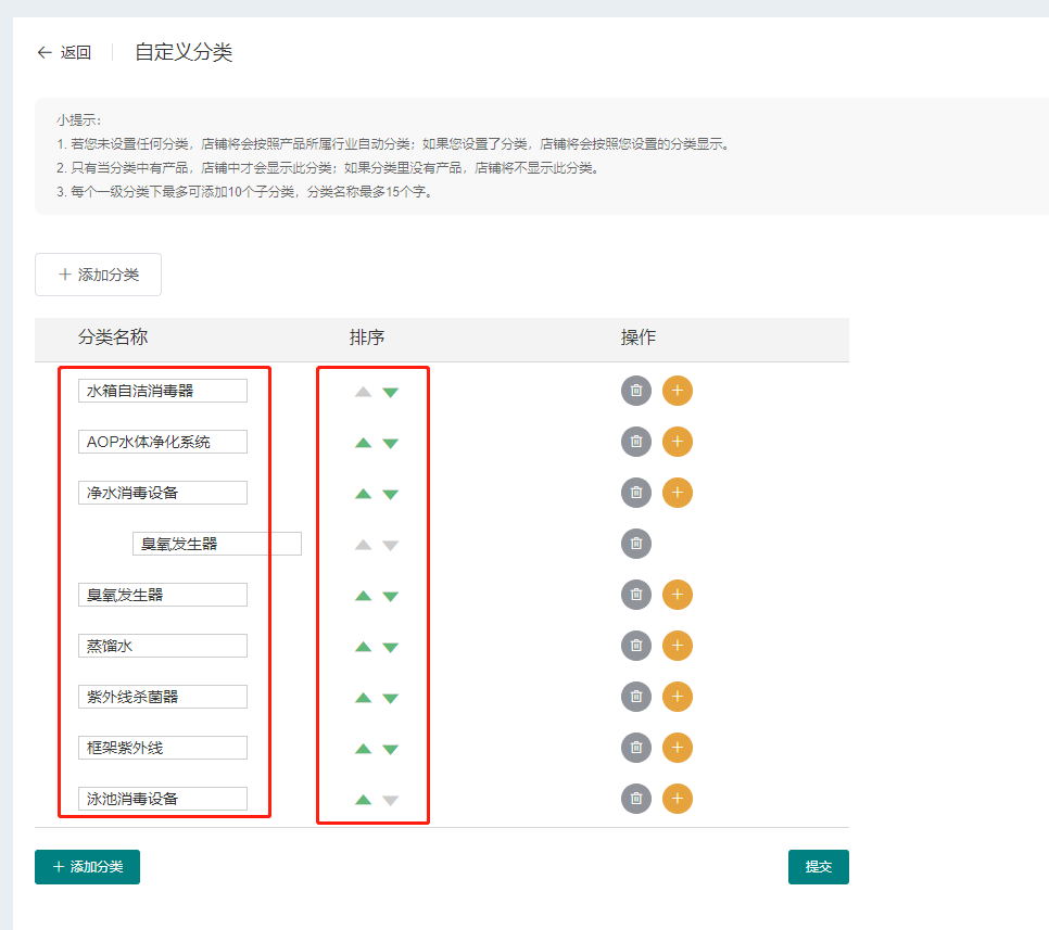 自定义产品类别