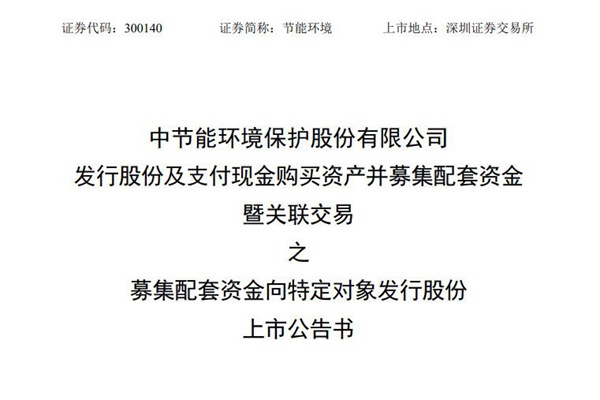 中节能环境保护股份有限公司(简称:节能环境)1月18日公告,将于1月22日完成重大资产重组项目募集配套资金的股份发行与上市,发行数量508,474,576 股,发行价格5.90元/股,募集资金总额约30亿元。这意味着,A股目前交易规模最大的垃圾焚烧发电行业重组项目圆满完成,涉及金额111.64亿元。 公告显示,此次交易标的为中节能环...
