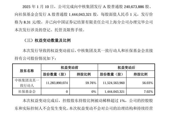 2025年01月14日,中国核能电力股份有限公司发布《关于完成2024年度向特定对象发行A股股票暨股东权益变动的提示性公告》。图源:中国核电公告 公告显示,中国核能电力股份有限公司于 2025 年 1月10日完成向特定对象发行A股股票。公司控股股东中国核工业集团有限公司、全国社会保障基金理事会以现金方式一次性全额认购本次发行的 A ...