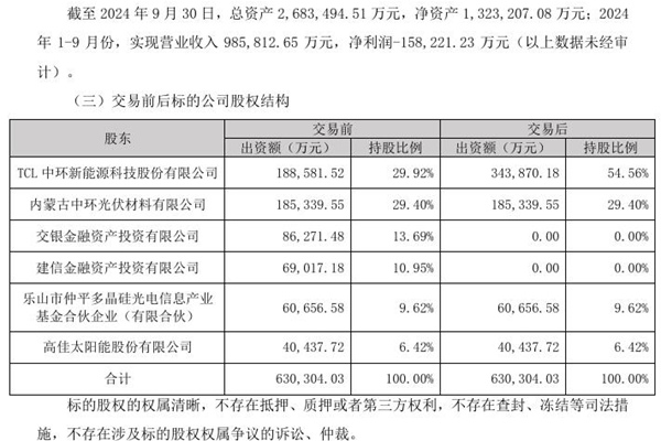 2024年12月28日,TCL 中环新能源科技股份有限公司发布《关于收购控股子公司部分股权的公告》。图源:TCL 中环公告 公告显示,TCL中环收购交银投资持有的中环晶体(内蒙古中环晶体材料有限公司)13.69%股权和建信投资持有的中环晶体10.95%股权,股权转让价款分别为10亿元和8亿元。本次交易完成后,TCL 中环将直接及间接...
