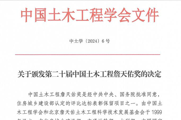 2024年10月18日,中国土木工程学会发布《关于颁发第二十届中国土木工程詹天佑奖的决定》。 中国土木工程詹天佑奖是经中共中央、国务院批准同意,住房城乡建设部认定的评比达标表彰保留项目之一。由中国土木工程学会和北京詹天佑土木工程科学技术发展基金会于1999年设立,在住房城乡建设部、交通运输部、水利部、中国国家铁路集团有限公司(原铁道...