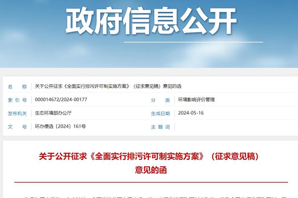 关于公开征求《全面实行排污许可制实施方案》(征求意见稿)意见的函 为贯彻落实党的二十大精神,全面推进美丽中国建设,进一步深化排污许可制度改革,推动全面实行排污许可制,我部组织编制完成《全面实行排污许可制实施方案(征求意见稿)》,现公开征求意见。征求意见稿及其编制说明可登录生态环境部网站“意见征集”栏目检索查阅。 ...