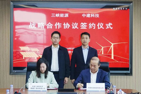 3月4日,三峡能源总经理、党委副书记张龙与中建科技党委书记、董事长孙士东座谈,双方就落实战略合作协议,推进多领域合作等进行深入交流。三峡能源副总经理、党委委员刘姿,中建科技副总经理安定军代表双方签署战略合作协议。 张龙表示,希望双方扩大经验交流、形成战略协同,聚焦国内重点市场区域发展需求,共同推进分布式光伏、“光储直柔&...