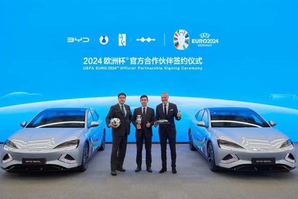 1月31日,比亚迪与欧足联签约仪式在深圳举行。作为2024欧洲杯官方合作伙伴,比亚迪将助力欧洲杯加速绿色转型,打造更加绿色、创新的全球顶尖赛事。 赛事期间,比亚迪新能源汽车将以2024欧洲杯官方用车身份亮相,为这一足球盛会提供绿色低碳的出行服务。同时,比亚迪多款车型将在比赛场馆、球迷广场与当地球迷见面,让欧洲消费者零距离感受新能源科...