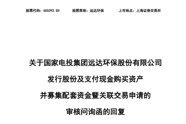 国家电投集团远达环保股份有限公司(简称:远达环保)近日公告称,公司已收悉上海证券交易所《关于国家电投集团远达环保股份有限公司发行股份及支付现金购买资产并募集配套资金暨关联交易申请的审核问询函》,就有关问题进行了回复,同时对《国家电投集团远达环保股份有限公司发行股份及支付现金购买资产并募集配套资金暨关联交易报告书(草案)》及其摘要进行了...