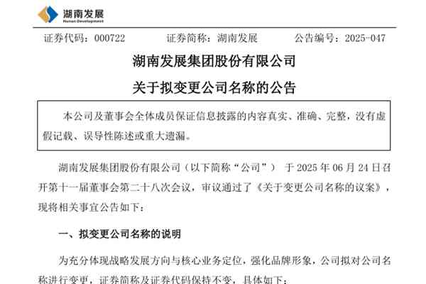 湖南发展集团股份有限公司(简称:湖南发展)近日公告称,为充分体现战略发展方向与核心业务定位,强化品牌形象,公司拟对公司名称进行变更,证券简称及证券代码保持不变,具体如下:图源:湖南发展公告 湖南发展表示,立足新发展阶段,公司将聚焦能源核心主业定位,重点围绕新能源项目开发建设和能源产业并购开展投资布局,驱动公司高质量发展。结合战略布局...