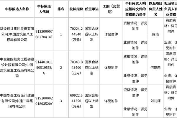 5月27日,阳江市区污水处理及排水排污管网改造项目工程总承包(EPC)第一标段中标候选人公示。名单如下: 第一中标候选人:华设设计集团股份有限公司、中国建筑第八工程局有限公司联合体,投标报价:70224.244540(万元); 第二中标候选人:中交第四航务工程勘察设计院有限公司、中国建筑第五工程局有限公司,投标报价:70343.8...