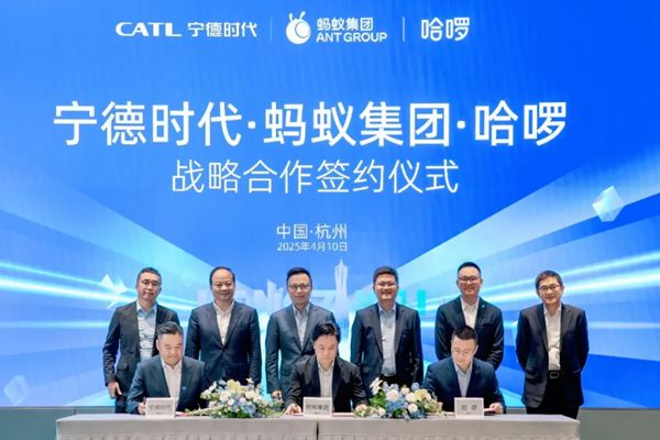4月10日,蚂蚁集团、哈啰与宁德时代正式签署战略合作协议。三方将基于数字科技、新能源技术与共享出行生态等核心优势,围绕绿色智能出行、数字科技、绿色运营及绿色投资四大方向展开深度合作,共同推动新能源产业智能化升级和生态体系建设。 蚂蚁集团董事长井贤栋、首席执行官韩歆毅;哈啰联合创始人、首席执行官杨磊,首席财务官陈晓冬;宁德时代董事长兼...