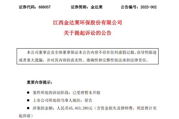 这已经是今年春节过后的第5起诉讼案例了。 3月24日,金达莱发布公告称,公司已向南昌市新建区人民法院提起诉讼,要求被告芜湖市三峡三期水环境综合治理有限责任公司(下称“芜湖三峡三期公司”)支付设备和运维款、律师费等共计4540万元。 本案中,被告芜湖三峡三期公司是三峡集团旗下企业,也是长江生态环保集团有限公司...