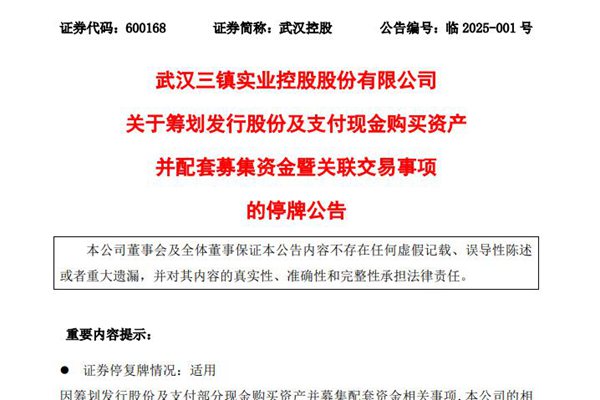时隔不到两个月,武汉三镇实业控股股份有限公司(简称:武汉控股)又抛出收购案。2月20日,武汉控股公告称,公司已收到武汉市城投集团书面通知,武汉市城投集团正在筹划武汉控股通过发行股份及支付部分现金相结合的方式购买武汉市政工程设计研究院有限责任公司(下称“武汉市政院”)100%股权并配套募集资金事项。 资料显示,...