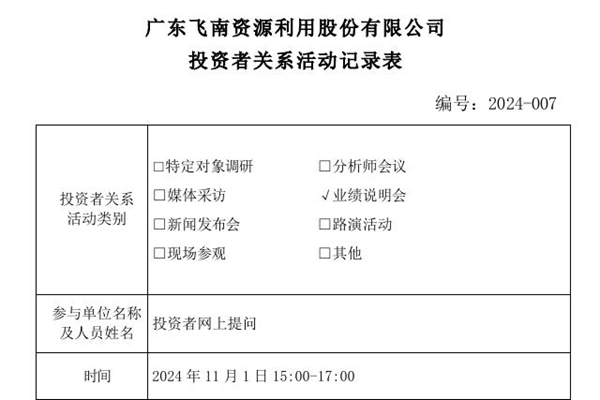 2024年11月1日,广东飞南资源利用股份有限公司回复了投资者网上提问。图源:飞南资源 关于江西巴顿和广西飞南的高负债率,飞南资源表示,“江西巴顿和广西飞南建设资金多数以母公司借款或往来形式投入,按股东实际投入资金算,实际负债率并不高,后期公司将视情况作资本结构优化”。 关于稀土业务,飞南资源表示&ldqu...