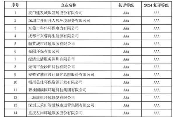 关于2024年度中国环境卫生行业企业 信用评价复评(第一批)结果的公示 根据《关于开展2024年度中国环境卫生行业企业信用评价年审工作的通知》(中环卫函〔2024〕58号)的安排,我会对2020—2021年度已获得信用等级证书的单位组织开展了2024年复评工作。依据《中国环境卫生行业企业信用评价管理办法(试行)》,经过资料审...