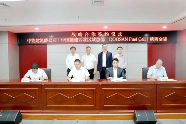 8月13日,中国能建西北区域总部(西北建投)与斗山燃料电池公司、中国能建氢能公司、陕西金骏公司签署四方战略合作协议。中国能建西北区域总部(西北建投)执行总经理、党委副书记孟团国,斗山燃料电池有限公司董事长李斗淳,中能建氢能源有限公司副总经理刘大为、陕西金骏集团董事长李俊见证签约。 中国能建是中国乃至全球能源电力、基础设施等行业提供系...