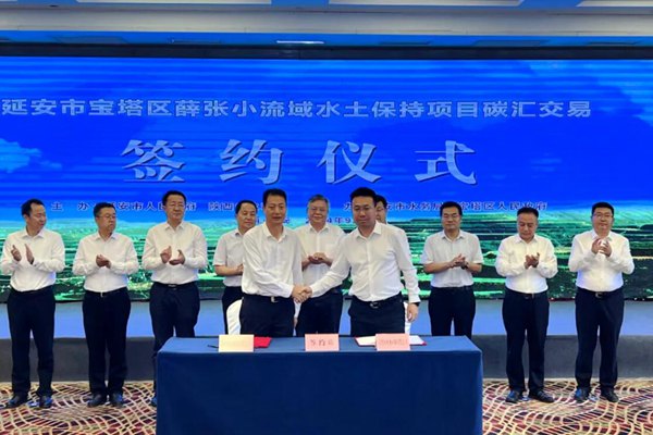 9月19日,延安市宝塔区薛张小流域水土保持项目碳汇交易签约仪式在延安举行。此次交易转让水土保持碳汇量15.1万吨,金额543.6万元,平均每吨36元。延安水务环保集团党委书记、董事长古晓成代表集团公司成功签约5万吨碳汇交易量。实业公司党总支书记、董事长徐鹏和有关同志参加签约仪式。 签约仪式上,延安市宝塔区水务环保有限公司代表宝塔区政...