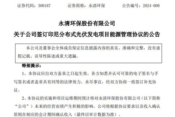 据永清环保股份有限公司(简称:永清环保)公告,公司旗下控股孙孙公司 PT. Dezhiqing New Energy Indonesia(中文译名:印尼德之清新能源有限公司,以下简称“印尼德之清”)已经与 PT Dexin SteelIndonesia(中文译名:印尼德信钢铁有限公司,以下简称“印尼...