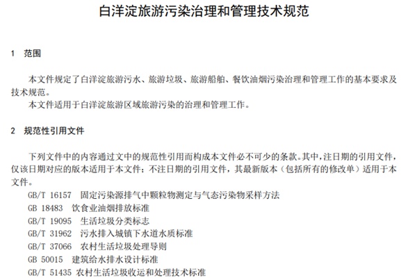 2024年3月2日,由河北省市场监督管理局发布的地方标准《白洋淀旅游污染治理和管理技术规范》(DB 13/T 5918—2024)正式启动施行。该文件由河北省生态环境厅提出并归口,文件规定了白洋淀旅游污水、旅游垃圾、旅游船舶、餐饮油烟污染治理和管理工作的基本要求及技术规范,适用于白洋淀旅游区域旅游污染的治理和管理工作。(全...