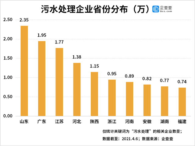 污水处理是近年来我国生态环境保护的重点领域,《重点流域水生态环境保护“十四五”规划编制技术大纲》的出台,进一步推动了污水处理产业的发展。企查查数据显示,目前我国共有20.86万家污水处理相关企业,山东省以2.35万家企业排名第一,广东、江苏分列二三位,西安、广州、长沙则是排名前三的城市。2020年,污水处理相关企业新注册4.5...