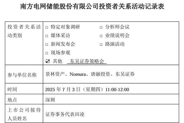 2025年07月07日,南方电网储能股份有限公司发布《2025年7月3日投资者关系活动记录表》。图源:南网储能公告 投资者提出的问题及公司回复情况整理 1、请问公司在建抽蓄项目具体投产计划如何?未来抽蓄规划情况如何? 答:公司目前在建抽蓄项目9座,装机容量1080万千瓦,根据建设计划,其中南宁、梅州(二期)2个项目预计2025年...