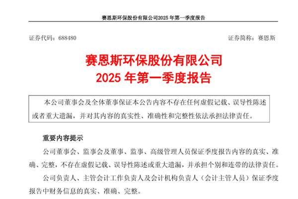 赛恩斯环保股份有限公司(简称:赛恩斯)近日发布《2025年第一季度报告》。报告期内,赛恩斯实现营业收入为1.7亿元,同比上升63.5%;归母净利润为1773万元,同比下降77.7%;扣非归母净利润为1707万元,同比上升10.1%;经营现金流净额为-5218万元,同比下降131.4%。图源:赛恩斯公告 赛恩斯以成为重金属污染防治领域...