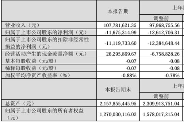 河南百川畅银环保能源股份有限公司(简称:百川畅银)近日发布《2025年第一季度报告》,报告期内,百川畅银实现营业总收入1.08亿元,同比下降7.19%;归母净利润亏损1167.53万元,上年同期亏损2093.96万元;扣非净利润亏损1111.97万元,上年同期亏损2807万元;经营活动产生的现金流量净额为2629.59万元,上年同期为...