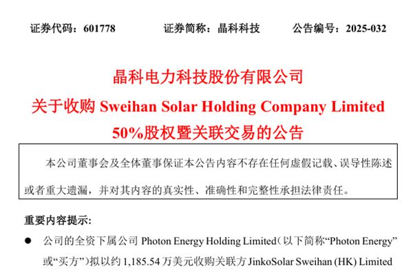 近日,民营光伏电站巨头晶科电力科技股份有限公司(简称:晶科科技)发布重磅公告,宣布全资下属公司Photon Energy 将以1185.54万美元的价格,从关联方Sweihan香港手中收购Sweihan Solar公司50%股权。交易完成后,晶科科技将间接获得阿布扎比1.209GW光伏电站项目20%的权益。同时也标志着晶科科技在中东新...