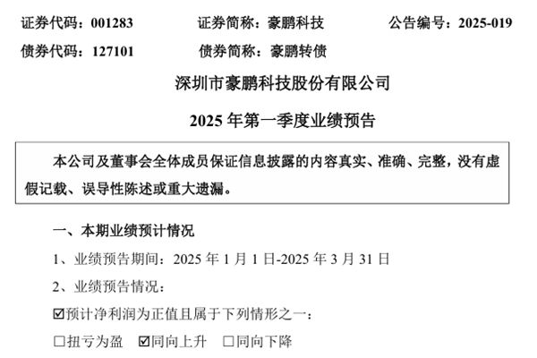深圳市豪鹏科技股份有限公司(简称:豪鹏科技)发布的2025年第一季度业绩预告显示,公司预计2025年第一季度营收11.5亿元-12.5亿元,比上年同期增长15.74%-25.81%;归属于上市公司股东的净利润为3000万元-3500万元,比上年同期增长846.70%-1004.48%。 资料显示,豪鹏科技创立于2002年,公司致力于...