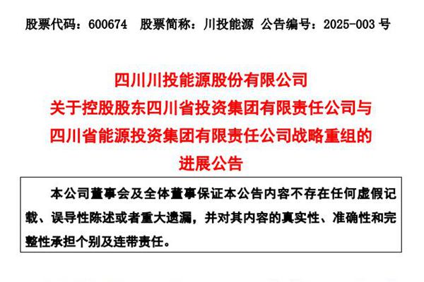 四川川投能源股份有限公司(简称:川投能源)近日公告称,1 月 14 日,四川省投资集团有限责任公司(下称“川投集团”)与四川省能源投资集团有限责任公司(下称“能投集团”)签署了《四川省投资集团有限责任公司与四川省能源投资集团有限责任公司之合并协议之补充协议》。 根据该《补充协议》,新公...