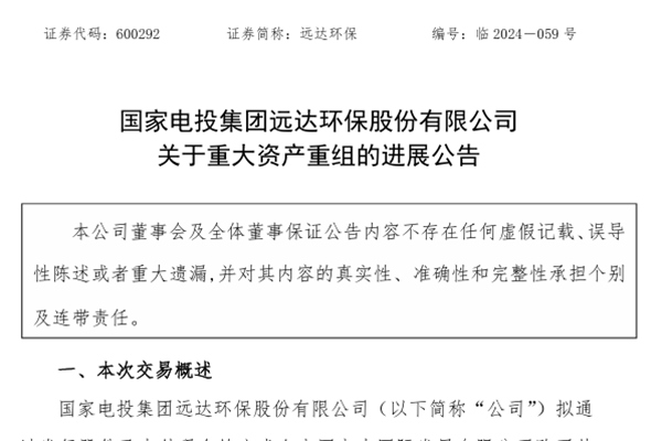 2024年12月16日,国家电投集团远达环保股份有限公司发布《关于重大资产重组的进展公告》。 公告显示,公司拟通过发行股份及支付现金的方式向中国电力国际发展有限公司购买其持有五凌电力有限公司(以下简称“五凌电力”)63%股权、向湖南湘投国际投资有限公司购买其持有五凌电力37%股权以及向国家电投集团广西电力有限...