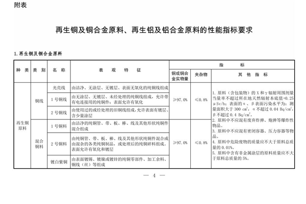 关于规范再生铜及铜合金原料、再生铝及铝合金原料进口管理有关事项的公告 为推动再生金属产业高质量发展,规范再生铜及铜合金原料、再生铝及铝合金原料(以下简称再生铜铝原料)的进口管理,现将有关事项公告如下。 一、符合附表要求的再生铜铝原料不属于固体废物,可自由进口。附表中不同种类的再生铜铝原料不允许混装,报关时同一报关单下不允许申报不同种类...