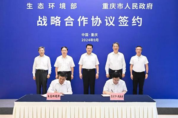 9月11日,生态环境部与重庆市人民政府在重庆签署《生态环境部 重庆市人民政府共同推进重庆在长江经济带绿色发展中发挥示范作用战略合作协议》。重庆市委书记袁家军,生态环境部部长黄润秋出席签约仪式并讲话。黄润秋和重庆市委副书记、市长胡衡华分别代表双方签署协议。 黄润秋代表生态环境部感谢重庆对生态文明建设和生态环境保护工作的大力支持。他表示...