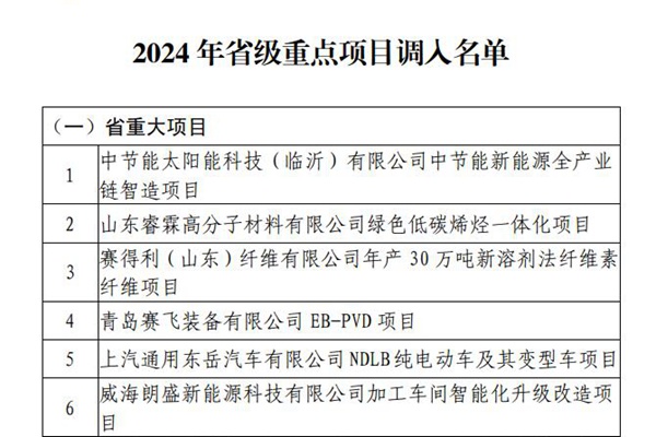 山东省发展和改革委员会发布《关于印发2024年省级重点项目调整名单的通知》,附2024年省级重点项目调入名单,2024年省级重点项目调出名单以及由准备类调整为实施类项目名单。 调入包括中节能太阳能科技(临沂)有限公司中节能新能源全产业链智造项目、山东睿霖高分子材料有限公司绿色低碳烯烃一体化项目、山东华源产业园开发有限公司节能材料产业...