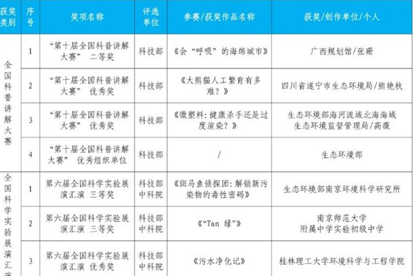 生态环境部在推动美丽中国建设的新征程上,积极响应国家号召,始终把科学普及放在与科技创新同等重要的位置,2023年在科技部、中国科协等部门组织的各类科普活动中屡获佳绩。 全国科普讲解大赛取得历史性突破 全国科普讲解大赛作为国内科普讲解领域的顶尖赛事,自2014年创办以来,生态环境部连续10年组织参赛,2023年生态环境部取得历史性突...