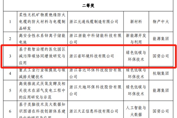 近日,浙江省国资委公布了第一届“领航者杯”浙江国资国企创新大赛获奖名单,浙江省环境科技有限公司“基于数智治理的医化园区减污降碳协同增效研究与应用”项目荣获大赛“二等奖”。 本届大赛以“聚焦国有企业打造原创技术策源地和建设世界一流企业”为主...