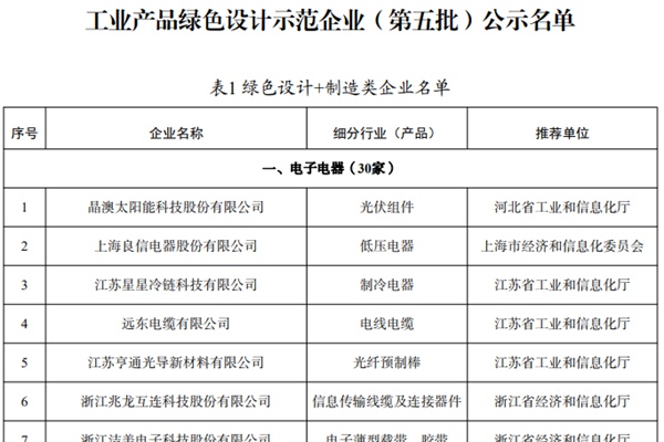 工业产品绿色设计示范企业(第五批)名单公示 为加快推行绿色设计,促进工业绿色低碳循环发展,根据《工业和信息化部办公厅关于组织推荐第五批工业产品绿色设计示范企业的通知》(工信厅节函〔2023〕73号),经企业自评估、省级工业和信息化主管部门(或中央企业)推荐及专家评审,隆基绿能、安世亚太等107家企业通过评审。现将拟确定为工业产品绿色设计...