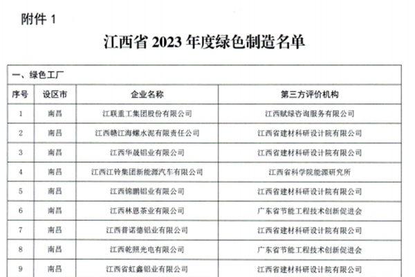 近日,江西省工信厅正式公布《江西省2023年度绿色制造名单》。其中,绿色工厂134家,绿色工业园区10家,绿色供应链管理企业3家。...