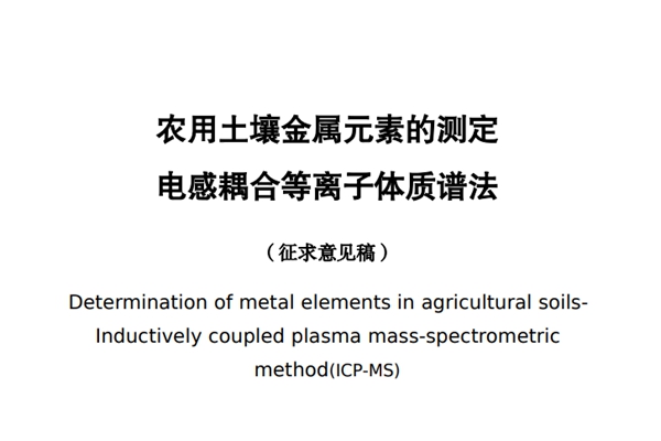《农用土壤金属元素的测定 电感耦合等离子体质谱法(征求意见稿)》日前发布,文件由由中华人民共和国农业农村部科技教育司提出,归口于农业农村部农业资源环境标准化技术委员会。文件规定了农用土壤中铅、镍、铜、锌、铬、镉、锰、钼的电感耦合等离子体质谱仪(ICP-MS) 的测定方法,适用于农用土壤中铅、镍、铜、锌、铬、镉、锰、钼的电感耦合等离子体...