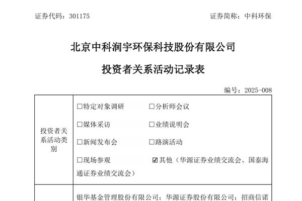 北京中科润宇环保科技股份有限公司(简称:中科环保)发布投资者关系活动记录表,回答关于未来业绩的主要增长点是什么、未来资本开支情况、公司应收账款结构等有关问题。详情如下↓ 一、公司业绩情况介绍 公司证券事务部投资者关系经理崔珂菁对2024年度经营情 况及绿色热能高效利用等业务亮点进行了介绍。公司业绩连续多年保持高速增长,2...