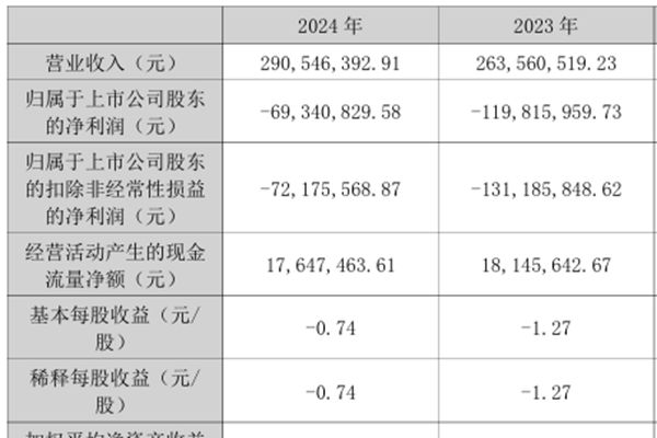 安徽超越环保科技股份有限公司(简称:超越科技)近日发布《2024年年度报告》。报告期内,超越科技实现营业总收入2.91亿元,同比增长10.24%;归属于上市公司股东的净利润6934.08万元,亏损同比减少42.13%;基本每股收益为-0.74元。图源:超越科技公告 超越科技自成立起即致力于节能环保行业。公司目前阶段主要提供的服务为工...