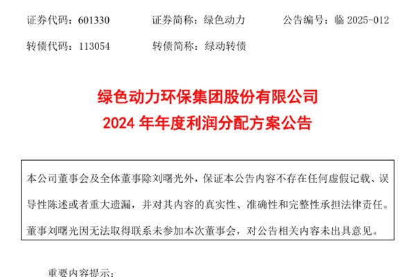 近日,绿色动力环保集团股份有限公司(简称:绿色动力)发布《2024年年度利润分配方案》,决定每股派发现金红利0.2元(含税)。 本次利润分配方案如下: 拟向全体股东每股派发现金红利0.2元(含税)。截至2025年3月28日,公司总股本139,345.29万股,以此计算合计拟派发现金红利27,869.06万元(含税)。 公司已于2...
