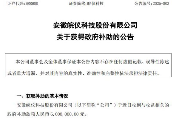 安徽皖仪科技股份有限公司(简称:皖仪科技)近日公告称,公司已收到与收益相关的政府补助款项人民币 6,000,000.00 元。 据皖仪科技发布2024年三季报,其实现营业总收入4.56亿元,同比下降9.77%,归母净利润-2668.31万,同比止盈转亏。具体来看,皖仪科技2024年前三季度实现总营收4.56亿元,同比下降9.77%。...