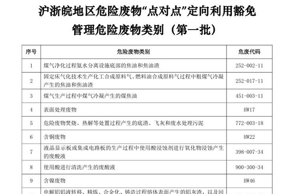 关于印发《沪浙皖地区危险废物跨省利用豁免管理的实施方案(试行)》的通知 各有关单位: 为进一步推进危险废物利用处置能力共享和优势互补,规范长三角部分区域内(上海市、浙江省、安徽省)危险废物跨省利用豁免管理活动,根据《中华人民共和国固体废物污染环境防治法》《强化危险废物监管和利用处置能力改革实施方案》(国办函〔2021〕47号)等有关规...