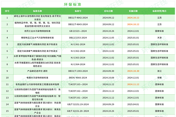近期又有多项环保标准更新啦,《固定污染源废气 硝酸雾的测定 离子色谱法》、《固定污染源废气 磷酸雾的测定 离子色谱法》、《水质 苯甲醚和甲基叔丁基醚的测定 吹扫捕集/气相色谱-质谱法》、《水质 阿维菌素B1a和阿维菌素B1b的测定 高效液相色谱法》四项国家生态环境标准都将于明年5月1日起实施。 另外,温室气体排放核算与报告要求系列标...