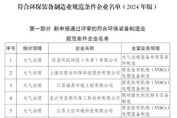 中华人民共和国工业和信息化部公告 2024年第30号 按照《环保装备制造行业(大气治理)规范条件》《环保装备制造行业(污水治理)规范条件》《环保装备制造行业(环境监测仪器)规范条件》《环保装备制造行业(固废处理装备)规范条件》等4个细分领域规范条件要求,经地方工业和信息化主管部门核实推荐、专家组评审、网上公示等程序,现将《符合环保...