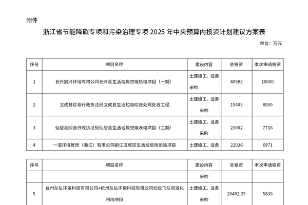 关于浙江省申请节能降碳专项和污染治理专项2025年中央预算内投资计划项目的公示 根据《浙江省中央预算内投资项目管理实施办法》(浙发改投资〔2020〕401号)要求,现将我省拟向国家发展改革委申请节能降碳专项和污染治理专项2025年中央预算内投资计划项目予以公示,公示期为发布公示起3个工作日,如有异议请向浙江省发展改革委反馈。 联系电话...