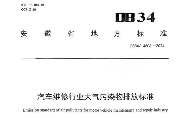 近日,安徽省生态环境厅、安徽省市场监督管理局联合发布地方标准《汽车维修行业大气污染物排放》(DB34/4808-2024)和《制鞋工业大气污染物排放标准》(DB34/ 4809-2024)。两项标准均自2024年7月1日起实施。 《汽车维修行业大气污染物排放》(DB34/4808-2024) 本文件规定了汽车维修行业大气污染物排放...
