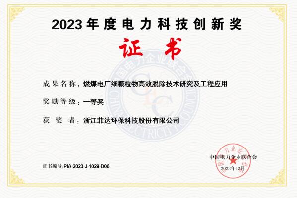 近日,中国电力企业联合会公布2023年度电力创新奖获奖名单,菲达环保参与研发的“燃煤电厂细颗粒物高效脱除技术研究及工程应用”荣获2023年度电力科技创新奖一等奖。 电力创新奖是由中国电力企业联合会设立的电力行业全国性奖项,旨在鼓励电力行业加强科学研究,加快自主创新,积极推广应用先进科学技术成果,促进科技成果转...